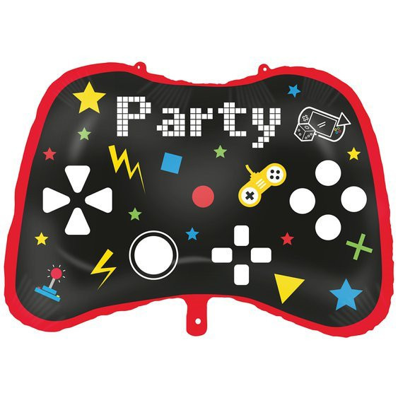 Balão foil em forma de comando da coleção Gaming Party para decorar a tua festa de aniversário com o mesmo tema. Pode ser cheio com ar ou com hélio. Inclui uma palhinha para facilitar o enchimento com ar. Também inclui fita.