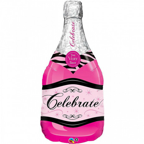 Balão foil (em folha de alumínio) em forma de garrafa de espumante cor de rosa, ideal para qualquer festa de adultos, para qualquer celebração.