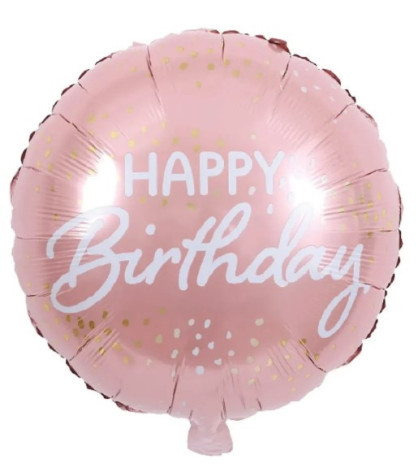 Balão cor de rosa com a inscrição "Happy Birthday", em foil. Para decoração de qualquer festa de aniversário.