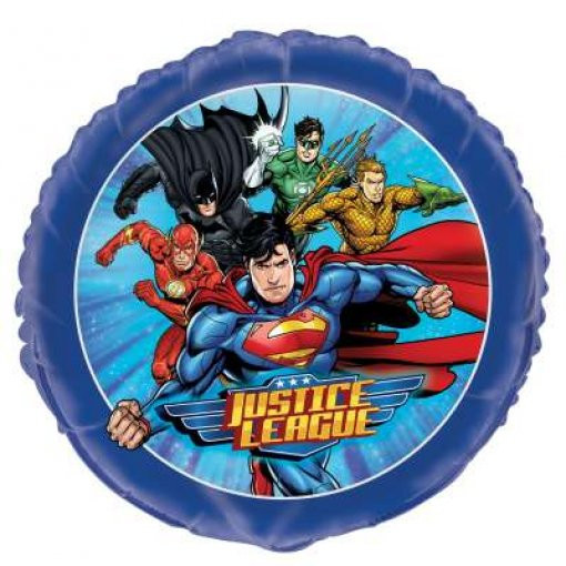 Balão redondo em foil da Justice League da DC Comics para decorar a tua festa de aniversário do tema.