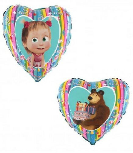 Balão foil em forma de coração com as cores do arco iris, da Masha e o Urso. Balão de dupla face.