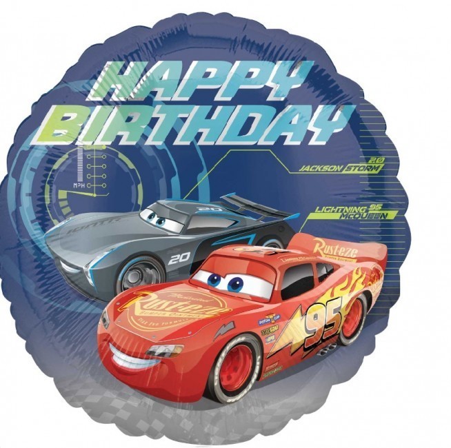 Belíssimo e colorido balão metálico dos Cars 3 - Happy Birthday, para animar ainda mais a tua festa de aniversario.A decoração ideal para qualquer festa de aniversário.Pode encher-se com ar e suspender ou com hélio para flutuar.Retenção de hélio: até 3 semanas.