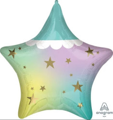 Balão foil, multi shape, com a forma de sleepy little star. Ideal para decorar um chá de bebé, baby shower. Com efeito 3D.