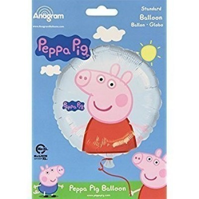 Balão metálico com 43cm de diâmetro da porquinha Peppa Pig, em foil que pode encher com hélio ou ar.