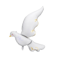 Balão foil com a forma de pomba branca muito elegante, com 90cm X 62cm para decorar festas de batizado, casamento, primeira comunhão e outros eventos.