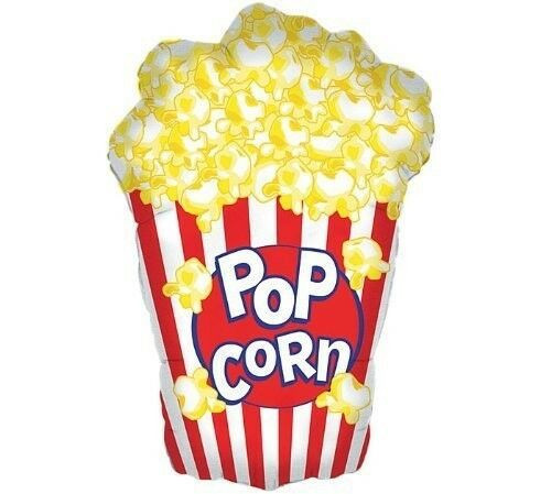 Balão foil (metálico) de caixa de pipocas para decoração de qualquer festa ou evento com cerca de 97cm.