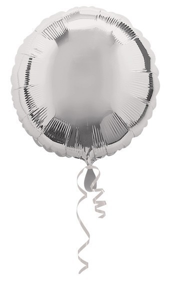 Balão em foil (folha de alumínio) prateado metalizado em forma redonda (43cm cheio).O balão é reutilizável e inclui pontas para suspender o balão caso seja cheio com ar.