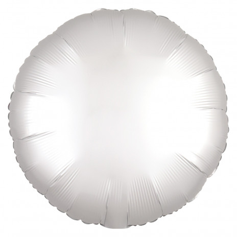 Balão foil em forma de círculo em branco acetinado, com acabamento metálico fosco e cintilante.