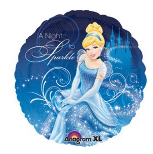 Balão foil redondo da Cinderela das Princesas da Disney com 43cm. Ideal para decorar a tua festa com o tema das Princesas ou da Cinderela. Com a inscrição "A Night to Sparkle".