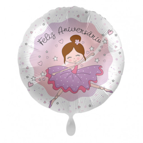 Balão redondo em foil com a inscrição "Feliz Aniversário" para decorar a sua festa de aniversário de bailarina.