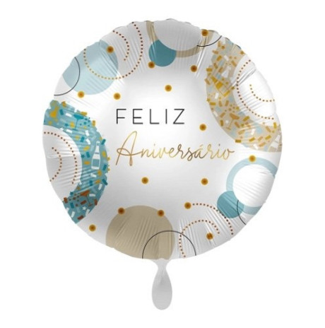 Balão Foil Redondo Feliz Aniversário Golden Blue 43cm