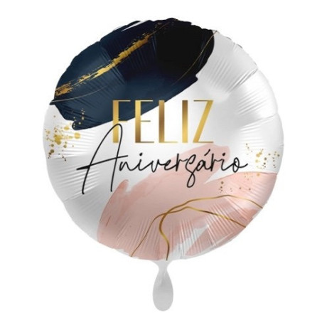 Balão Foil Redondo Feliz Aniversário Modern Vibes 43cm