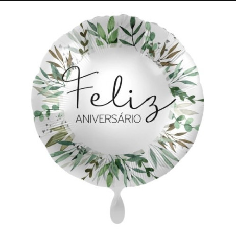 Balão Foil Redondo Feliz Aniversário Natural Greenery 43cm