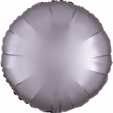Balão foil em forma de círculo em greige, uma mistura de cinza com bege acetinado, com acabamento metálico fosco e cintilante.