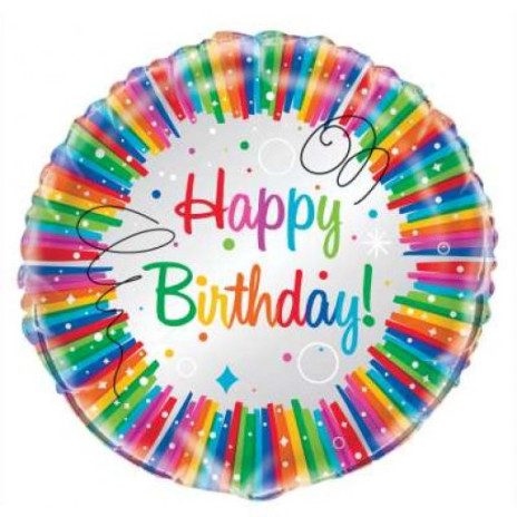 Balão Foil Redondo Happy Birthday Colorido 45cm