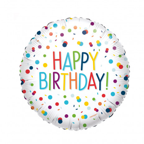 Balão Foil Redondo Happy Birthday Confetti 43cm