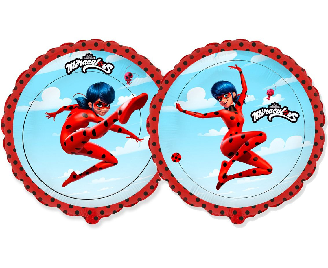 Balão redondo da Ladybug a saltar com as dimensões de 45 cm em folha de aluminio (foil). Balão de dupla face, com uma imagem diferente de cada lado. Pode encher-se com ar e suspender ou com hélio para flutuar.