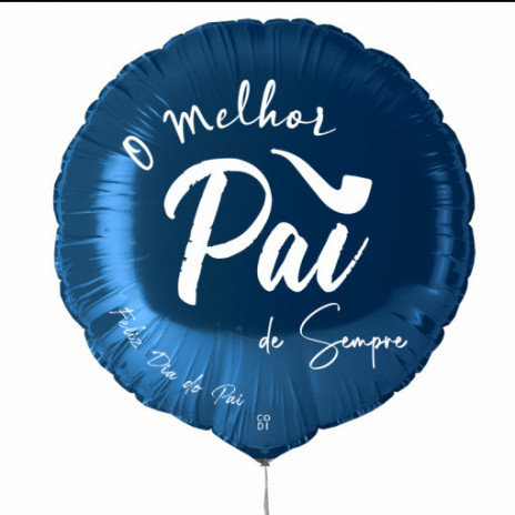Balão para festejar o dia do pai em foil redondo, com diâmetro de 43cm. Em foil, pode ser cheio com ar ou hélio. Com a inscrição "O Melhor Pai de Sempre, Feliz Dia do Pai".