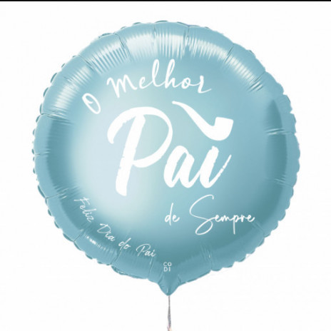 Balão para festejar o dia do pai em foil redondo, com diâmetro de 43cm. Em foil, pode ser cheio com ar ou hélio. Com a inscrição "O Melhor Pai de Sempre, Feliz Dia do Pai".