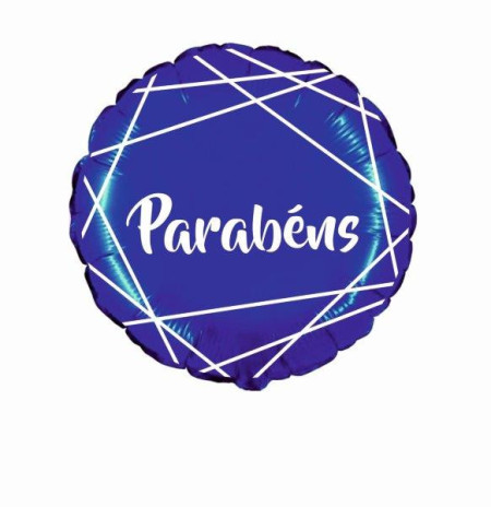 Balão Foil Redondo Parabéns Azul Safira-Branco 45cm