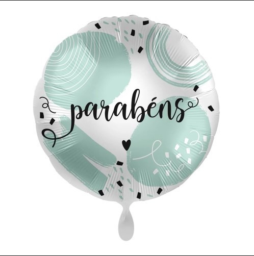 Balão redondo em foil com a inscrição "Parabéns" para decorar a sua festa de aniversário.