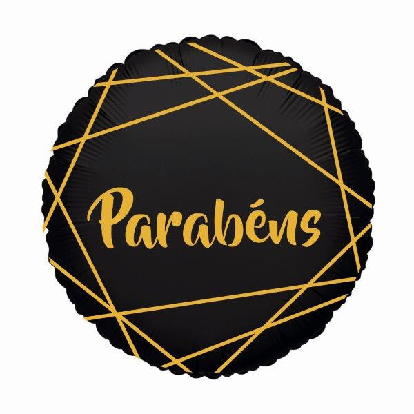 Balão Foil Redondo Parabéns Preto-Ouro 45cm
