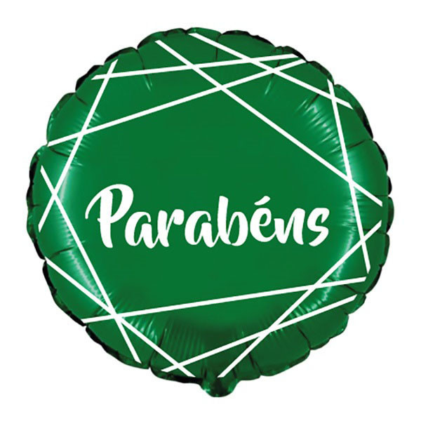Balão Foil Redondo Parabéns Verde-Branco 45cm