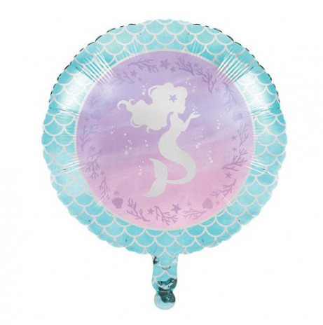 Balão redondo do tema Sereia iridescente com as dimensões de 45 cm em folha de aluminio (foil).