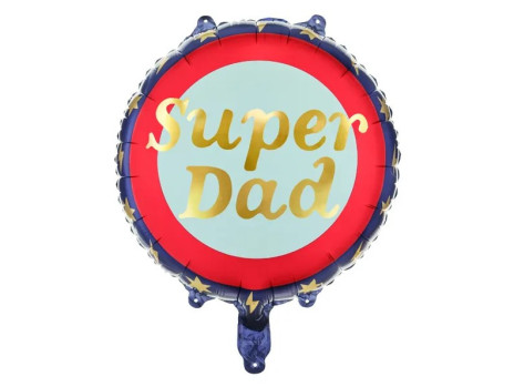Balão para festejar o dia do pai em foil redondo, com diâmetro de 45cm. Em foil, pode ser cheio com ar ou hélio. Com a inscrição "Super Dad".