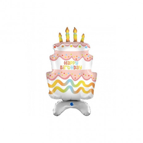 Balão em foil (folha de alumínio) de balão de aniversário de 97cm com apoio para colocar em cima de uma mesa ou de uma zona de destaque. Balão para encher apenas com ar. Inclui palhinha para encher o balão.