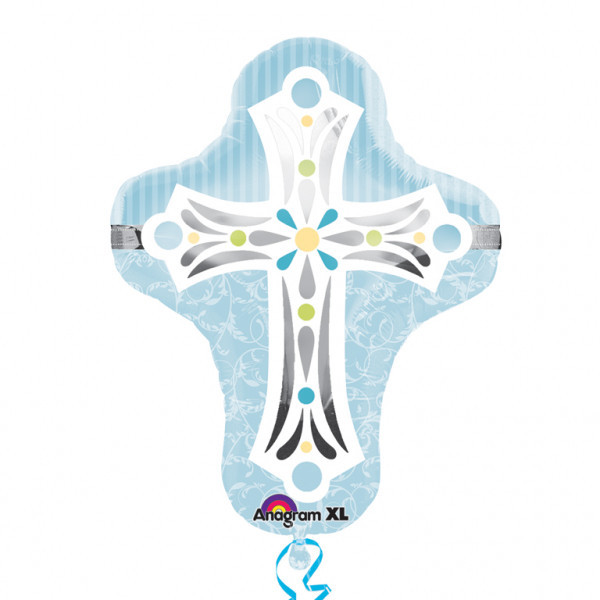 Balão Foil metálico Super Shape em forma de Cruz com medidas aproximadas 71x58cm