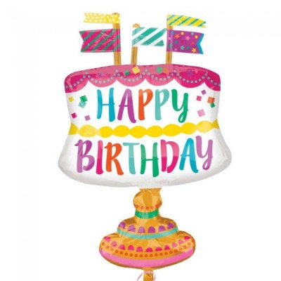 Balão Foil Supershape Bolo Feliz Aniversário