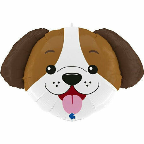 Balão foil metálico supershape com a forma de cabeça de cão com 84cm. Ideal para decoração de festa com o tema de animais.
