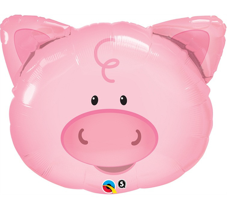 Balão foil metálico supershape com a forma de cabeça de porco com 76cm. Ideal para decorar de festa com o tema animais da quinta.