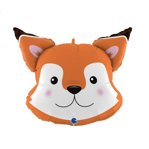 Balão foil metálico supershape com a forma de cabeça de raposa com 76cm. Ideal para decoração de festa com o tema de animais.