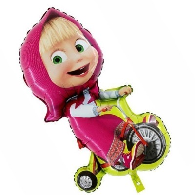 Belíssimo balão com formato da Masha na sua bicicleta, para decorar a tua festa.