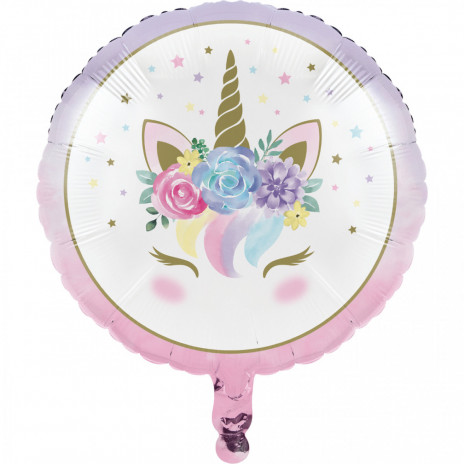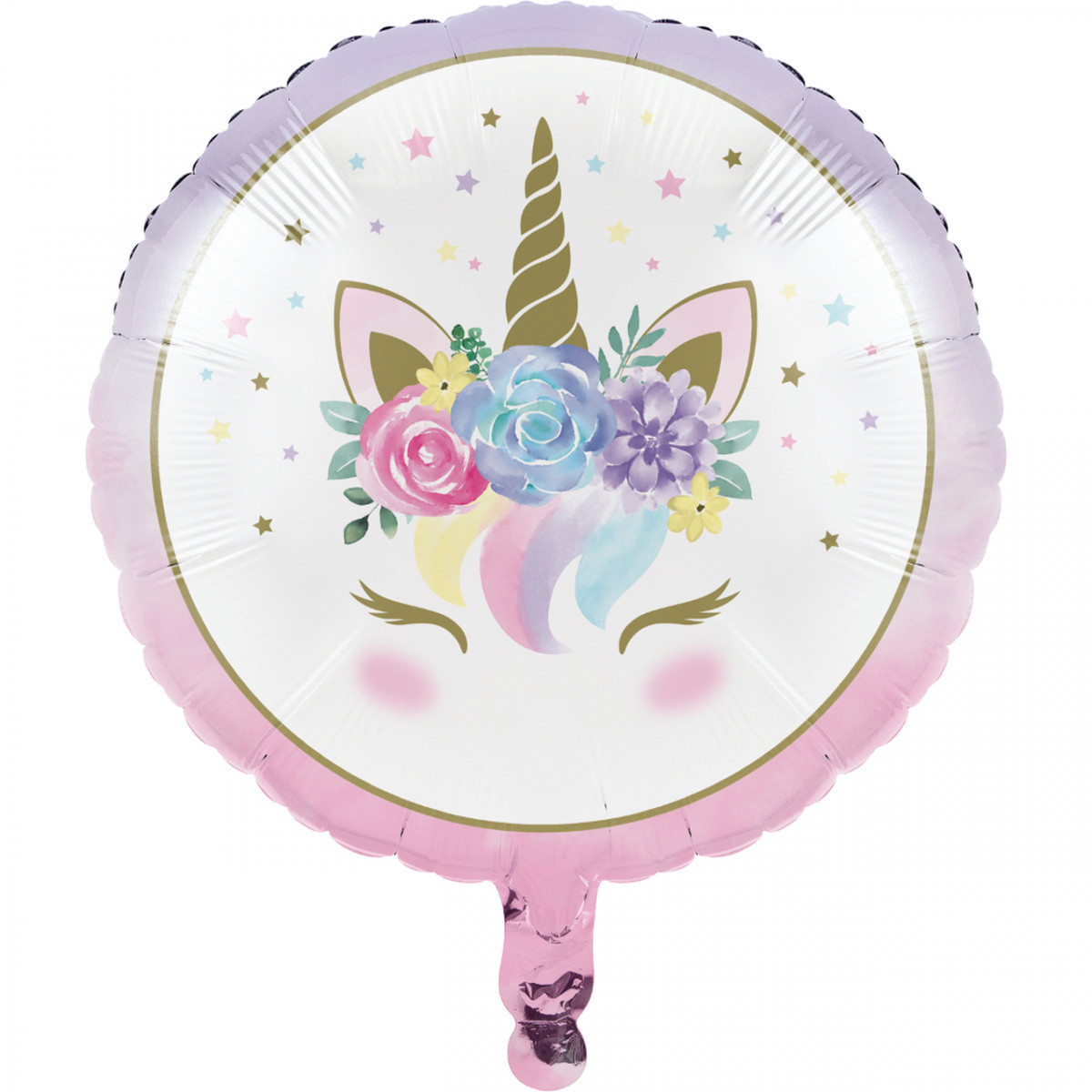 Balão em folha metálica (foil) redondo de unicórnio bebé, ideal para qualquer festa de aniversário de unicórnio ou para baby shower.