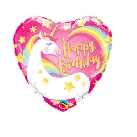Balão foil para decoração de festas com o tema Unicórnio, em formato coração.