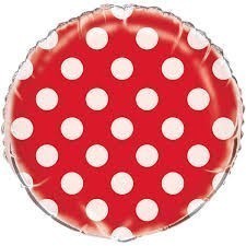 Balão em foil (folha de alumínio) Vermelho com bolinhas branco com 45 cm.O balão é reutilizável.