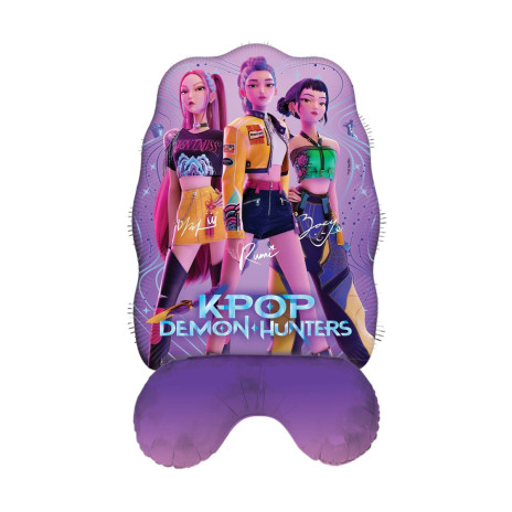 Balão das Huntrix Kpop Demon Hunters com 103cm de altura, não necessita de hélio porque tem base.