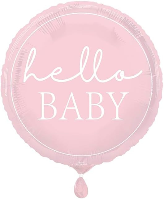 Um simpático e divertido balão em foil com a inscrição Hello Baby, ideal para novas mamãs e bebés recem-nascidos. para baby shower e chá de revelação.