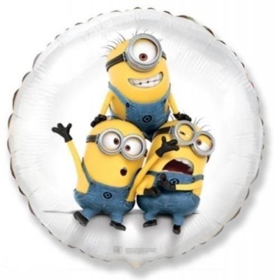 Belíssimo balão de dupla face, formato redondo, metálico com as personagens dos Minions, para animar ainda mais a tua festa de aniversario. Pode encher-se com ar e suspender ou com hélio para flutuar.