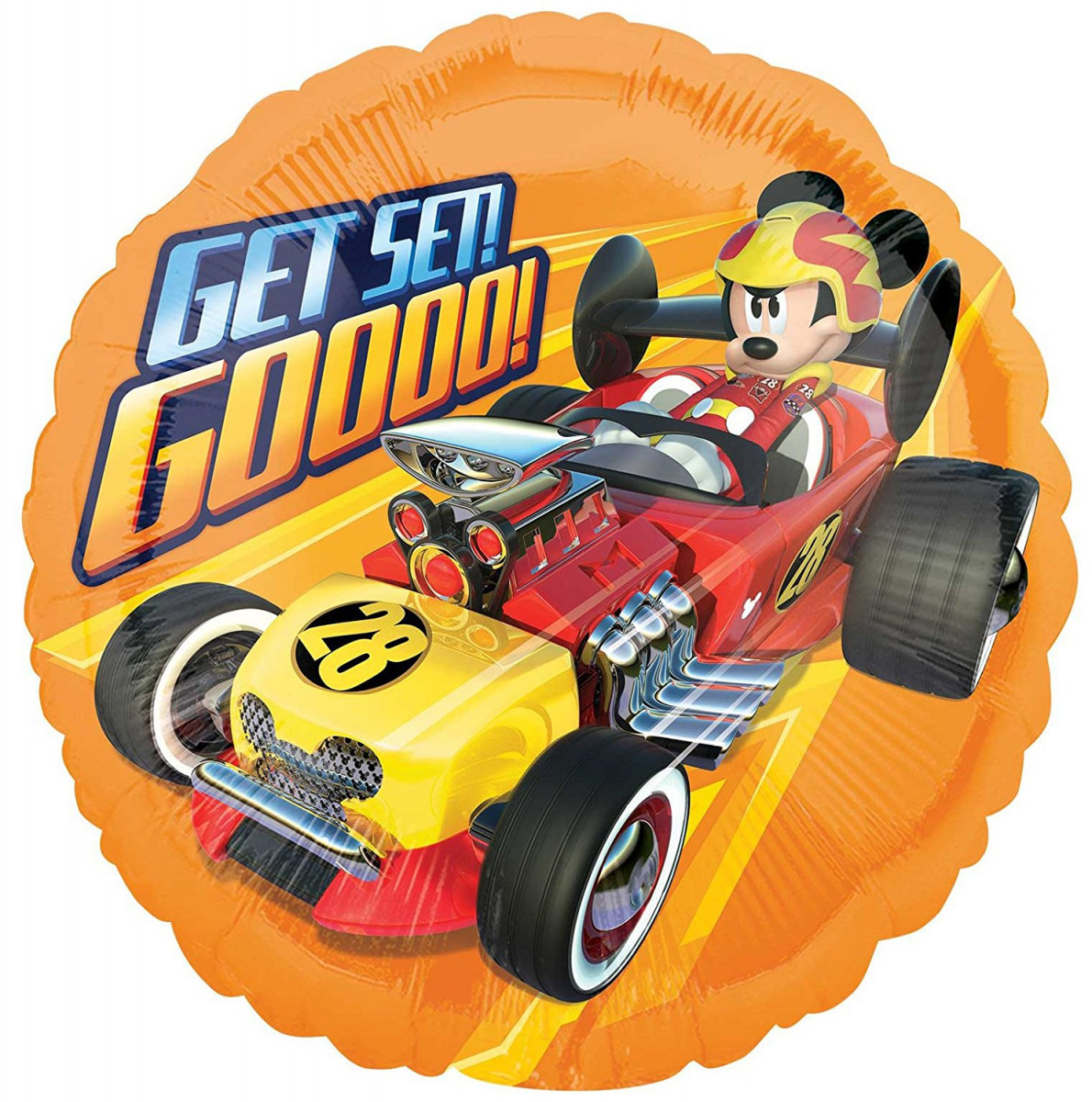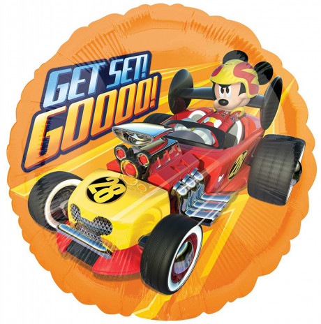 Belíssimo e colorido balão metálico de 43cm/17", em foil com imagem do Mickey Mouse Roadster Racers, da mais recente série da Disney