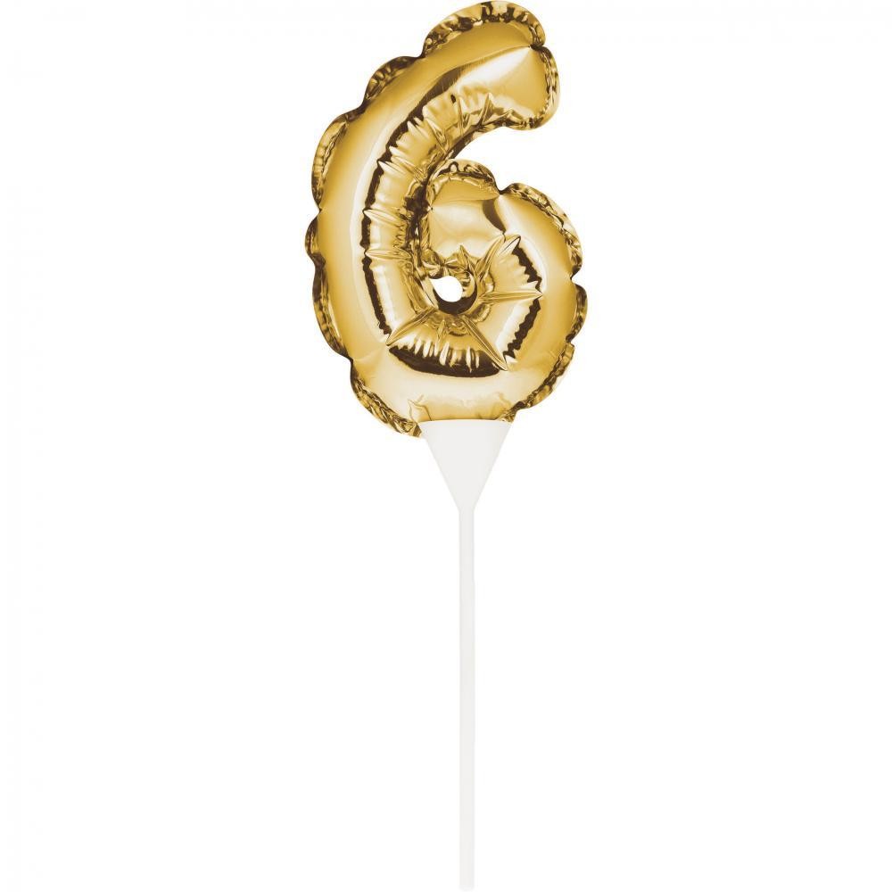 Balão Nº6, ornamental insuflável em tom dourado para decoração de bolo de aniversário.