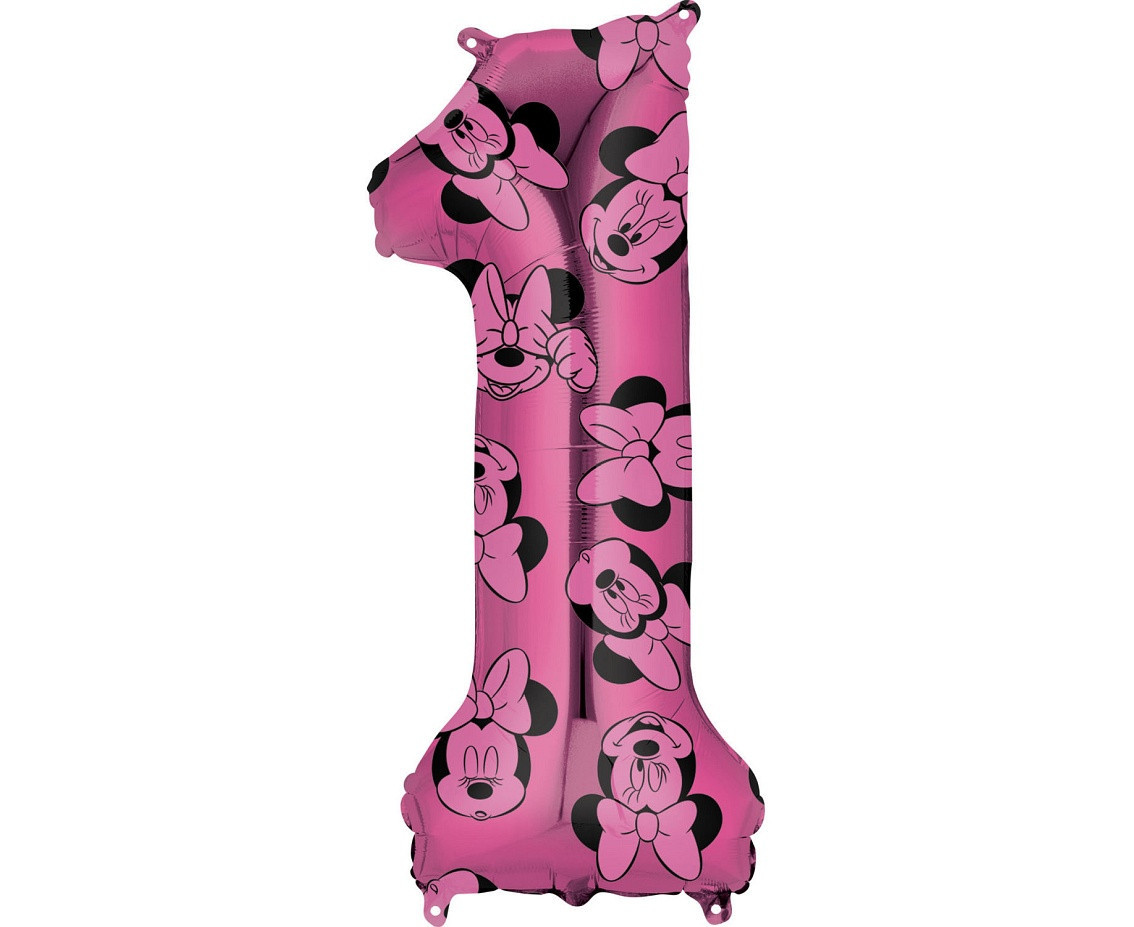 Balão número 1 em foil (folha de alumínio) da Minnie da Disney em cor de rosa com 66cms.