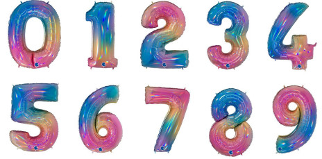 Balão em foil (folha de alumínio) com as cores do arco íris com 102cm de altura (40" polegadas). O balão é reutilizável e inclui pontas para suspender o balão caso seja cheio com ar.