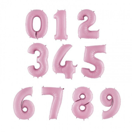 Balão em foil e cor rosa bebé disponivel nos numeros 0 a 9 com 102cm de altura.