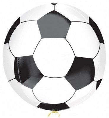 Balão redondo em foil (folha de alumínio) que fica com o efeito de uma bola de futebol com as dimensões de 38x40cm. Pode ser cheio com hélio ou simplesmente com ar apresentando a dimensão aproximada de uma bola de praia. Duração de suspensão com hélio até 3 semanas.