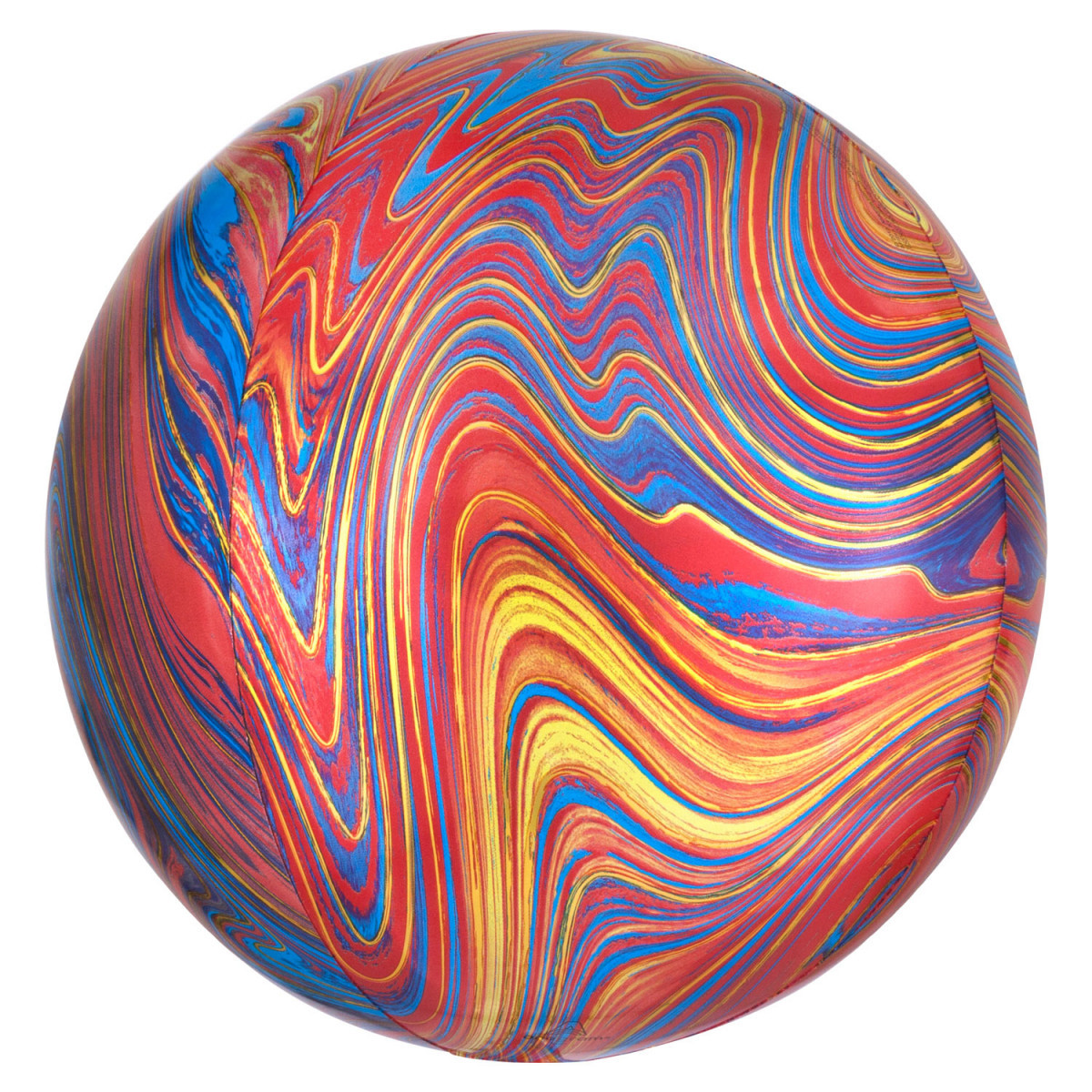 Um balão decorativo em orbz tipo mármore em tons coloridos.