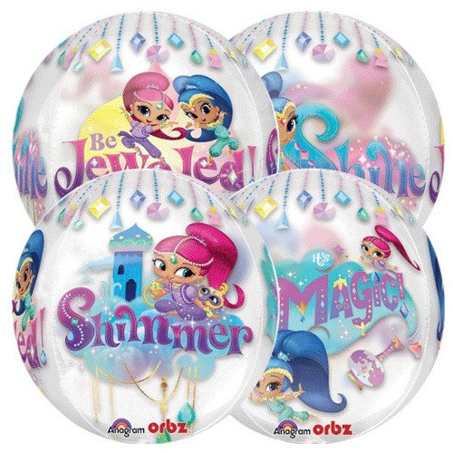 Um balão transparente em orbz com quatro bonitas imagens diferentes da Shimmer and Shine.